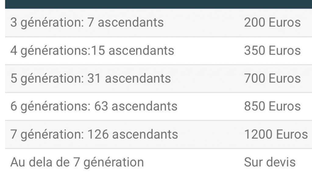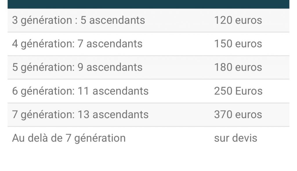 A noter que la 1ère génération est la personne dont on étudie l’ascendance cela peut être vous ou la personne de votre choix.