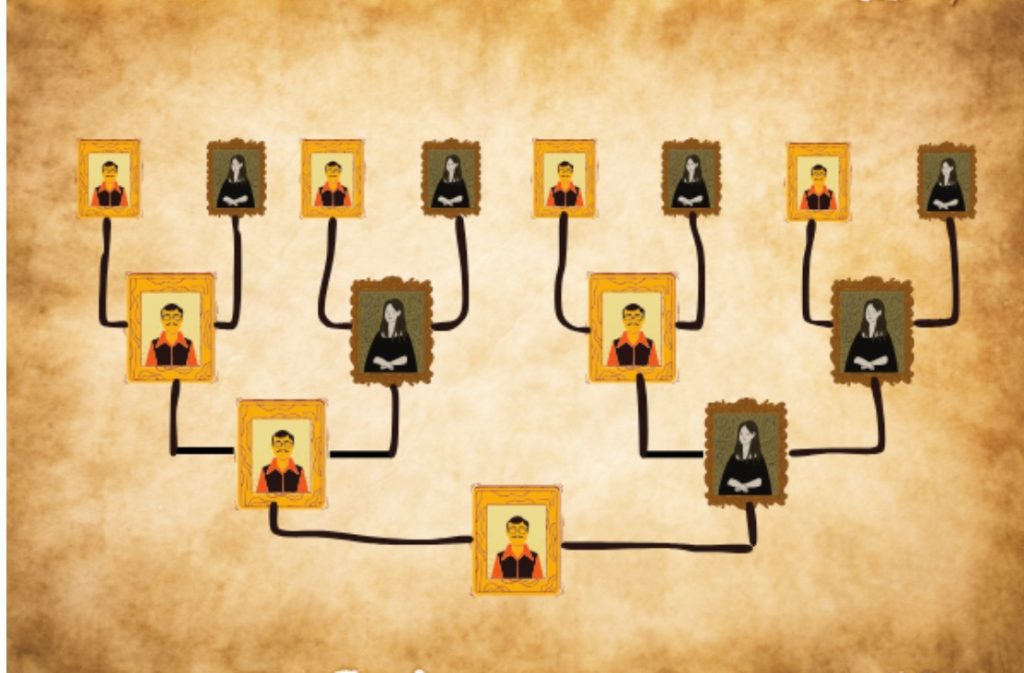 Les branches ascendantes remontent en indiquant les parents (père et mère) de chacun de vos ancêtres et ainsi révéler toutes les branches de votre généalogie jusqu’à épuisement des sources.